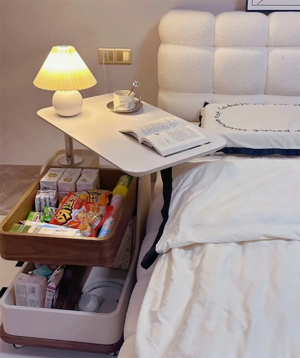 小到零食数据线,大到投影仪笔记本,用起来真的比传统床头柜方便太多。
